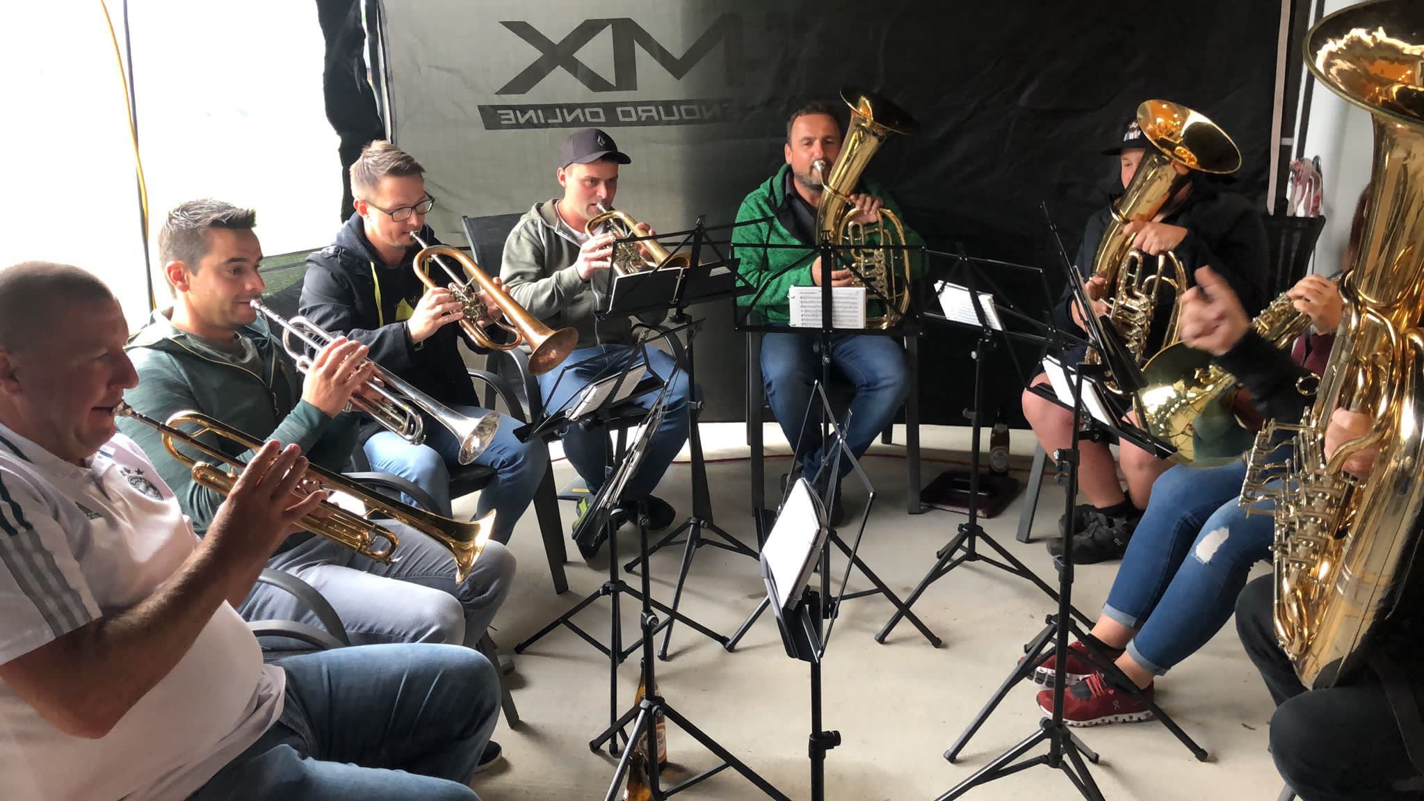 Natürlich hat sich das eine kleine Abordnung unserer Kapelle nicht nehmen lassen und die Beiden mit ein paar Märschen überrascht.